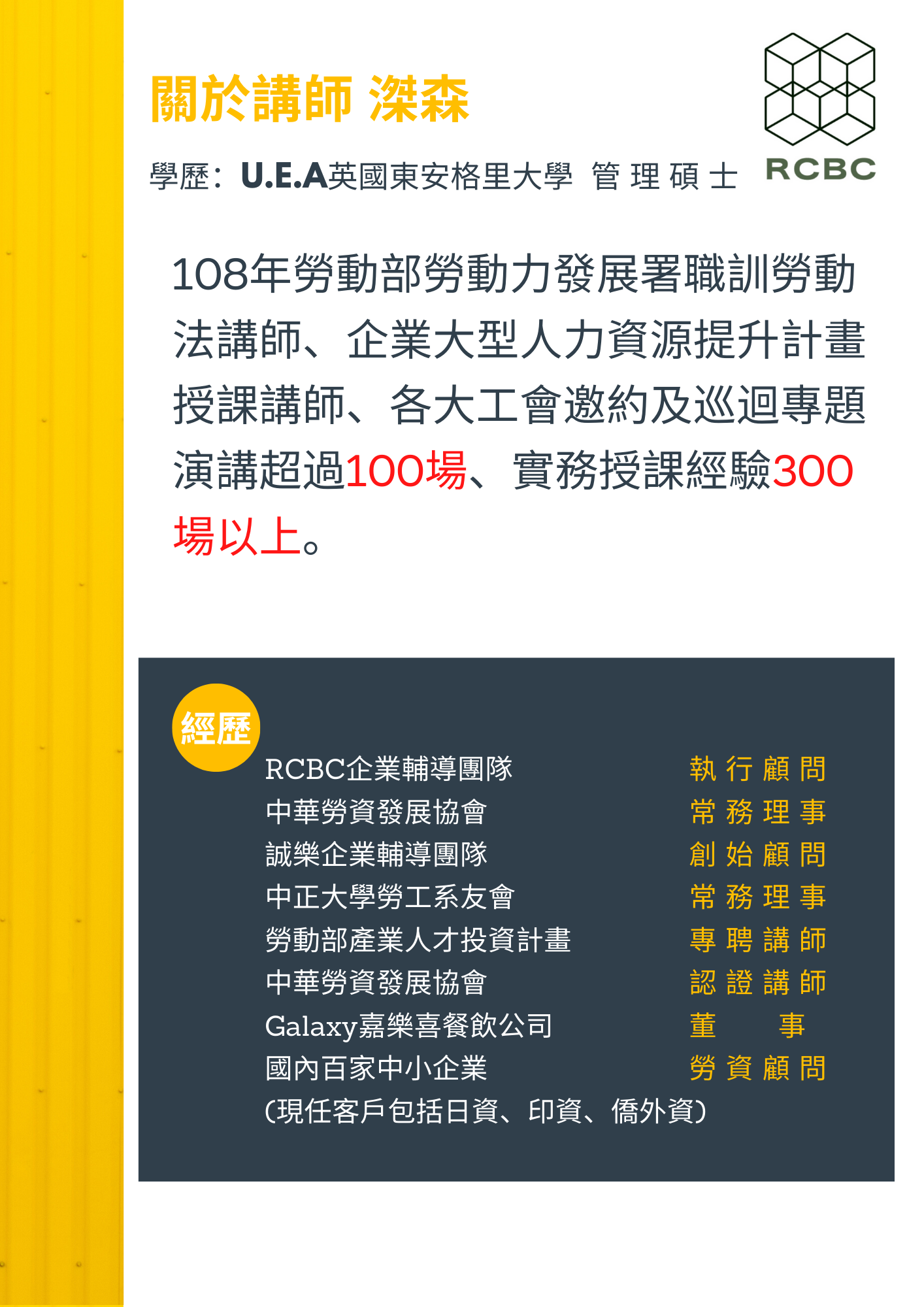 RCBC授課講師的教學經驗豐富,